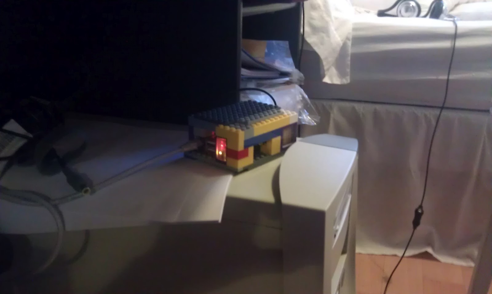 My RPi now has a new home - a lego case. I tried to convince my 7 year old son to build it, but he felt playing minecraft and ace of spaces on the computer was more important, so I rummaged through his lego collection and constructed what you see below.